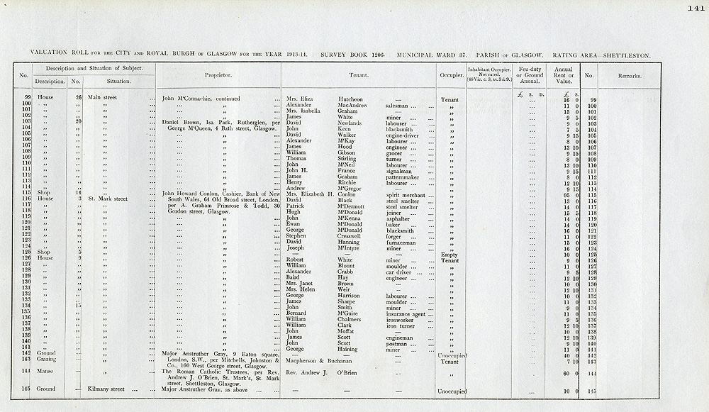 Glasgow Valuation Roll VR 1913-14, Ward 37, p141