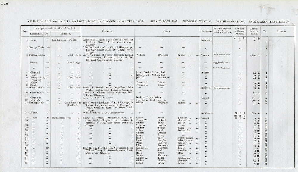 Glasgow Valuation Roll VR 1913-14, Ward 37, p148