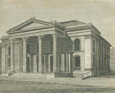 Allan and Ferguson's image of Greyfriars United Secession Church in North Albion Street, c 1821.