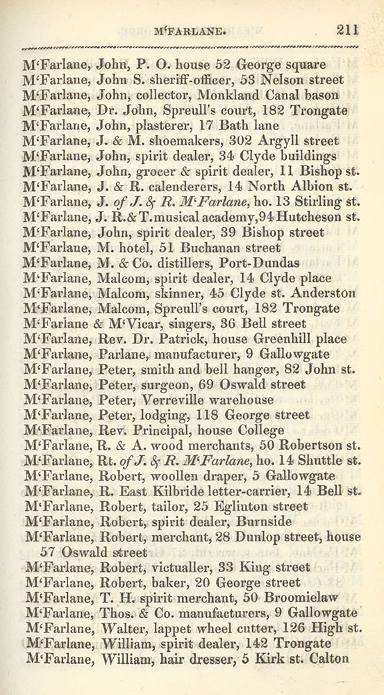 Post Office Glasgow Directory 1831-32, McFarlane, John-McFarlane, William.