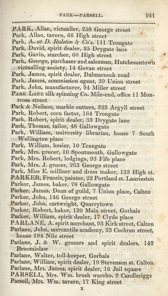 Post Office Glasgow Directory 1831-32, Park, Allan-Parsell, Mrs Wm.
