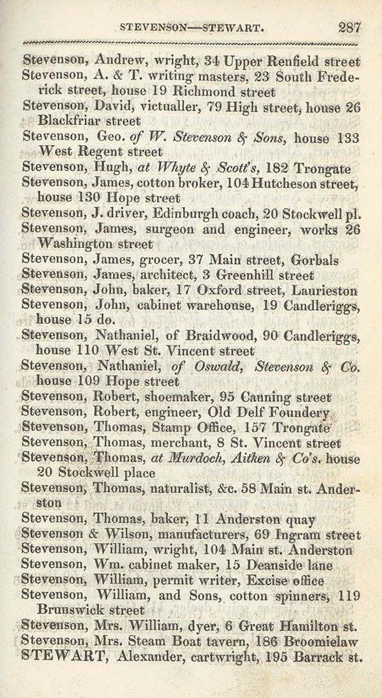Post Office Glasgow Directory 1831-32, Stevenson, Andrew-Stewart, Alexander.