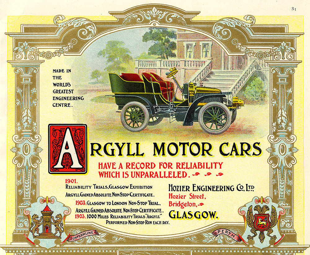 advertisements, Argyll Motor Cars, Hozier Engineering Co, motor cars