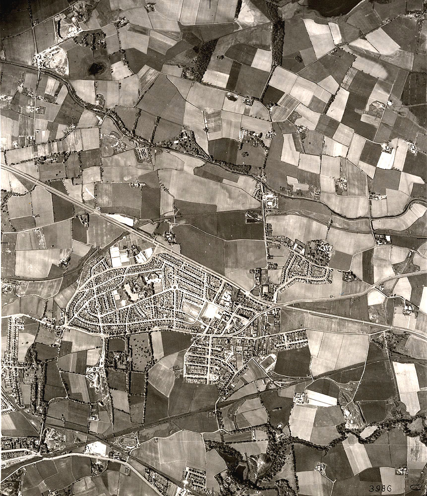 An aerial photograph of the Garrowhill and Baillieston area, surrounded by the fields and open countryside, taken in May 1950 by the RAF.