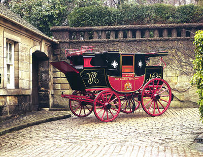 A coach built in 1840 by Holland & Holland. Its original use is not known, but it has been restored in the style of a Glasgow to London mail coach by staff at the Museum of Transport. The coach was purchased with the assistance of the Local Museums Purchase Fund.