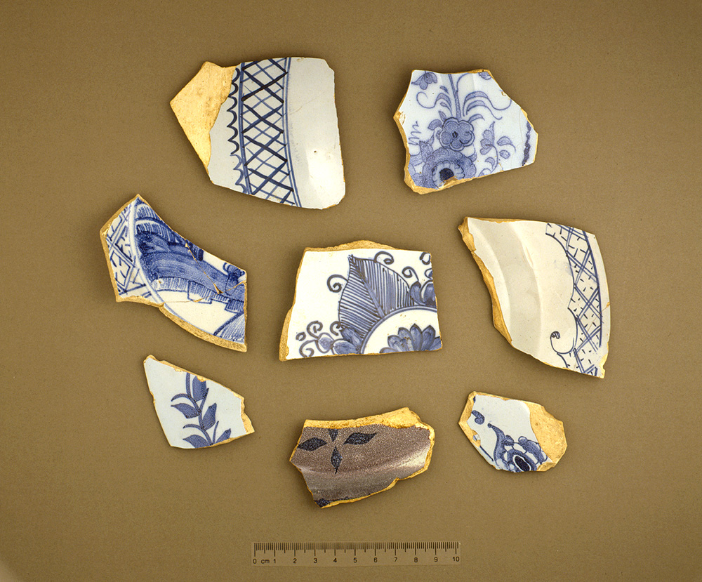 The Delftfield Pottery was established in 1748 at Broomielaw on the north bank of the Clyde. The factory closed in 1810 and the site was developed for other purposes. In 1975 sheds on the Broomielaw quayside were demolished prior to the construction of a dual carriageway along the river embankment and the Scottish Pottery Society organised an excavation of the area. Two trenches were dug to look for wasters which the pottery was known to have dumped on the foreshore until the practice was forbidden in 1759.