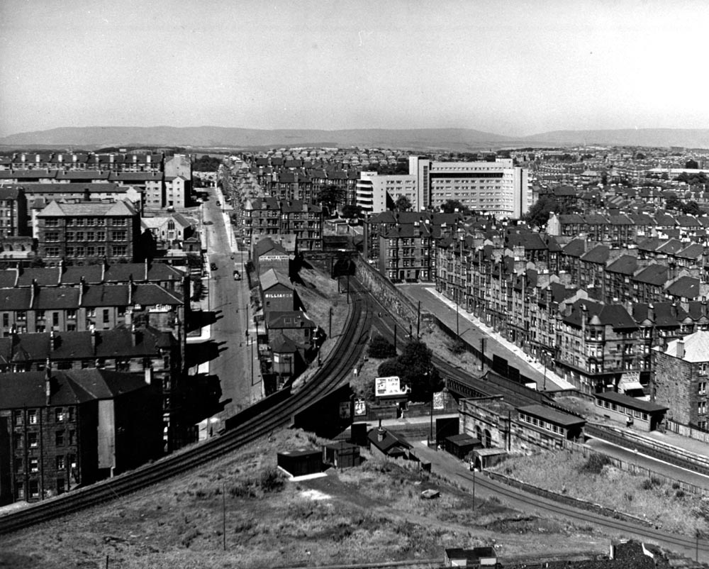 council houses, Crathie Court, Glasgow Central Railway, Glasgow Photographic Survey 1955, high rises, Lanarkshire & Dumbartonshire Railway, primary schools, railway bridges, railway stations, railway tunnels, spinster flats, tenements, Thornwood Primary School, Thornwood Public School