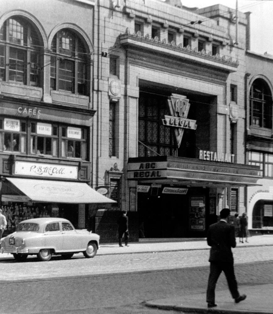 The Regal opened in 1929 as the Glasgow flagship for Associated British Cinemas (ABC) on the site of the old Panorama, where a movie was shown in Glasgow for the first time in 1896. In 1955 a wide screen was installed in the Regal and the interior re-decorated with a pink, turquoise and silver colour scheme.