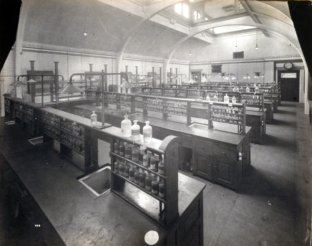 The Chemistry Laboratory at the Royal Technical College, c 1912. The laboratory was used for evening classes.