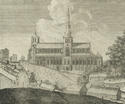 The main body of the cathedral was built during the course of the 13th century, but some elements such as the chapter house, treasury/sacristy, the two western towers (now demolished) and Blackadder's Aisle were added later in the Middle Ages. Archaeological excavations have revealed evidence for two distinct phases which date to the 12th century. These earlier cathedrals were built in the same location, but were on a much smaller scale. The earliest of these was consecrated in 1136 and it was replaced at the end of the 12th century only to be replaced itself c. 1200. Of the first little can be said other than it was built in a Romanesque style, but the excavations recovered a number of painted architectural fragments which reveal that the interior was brightly painted with abstract patterns and figural scenes. This second cathedral was also built on two levels and a very small portion of the south-east transept survives in the crypt.