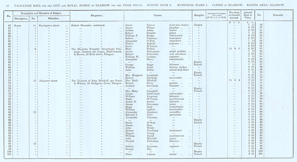 Glasgow Valuation Roll VR 1913-14, Ward 01, p032