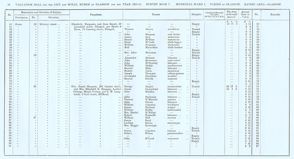 Glasgow Valuation Roll VR 1913-14, Ward 01, p038