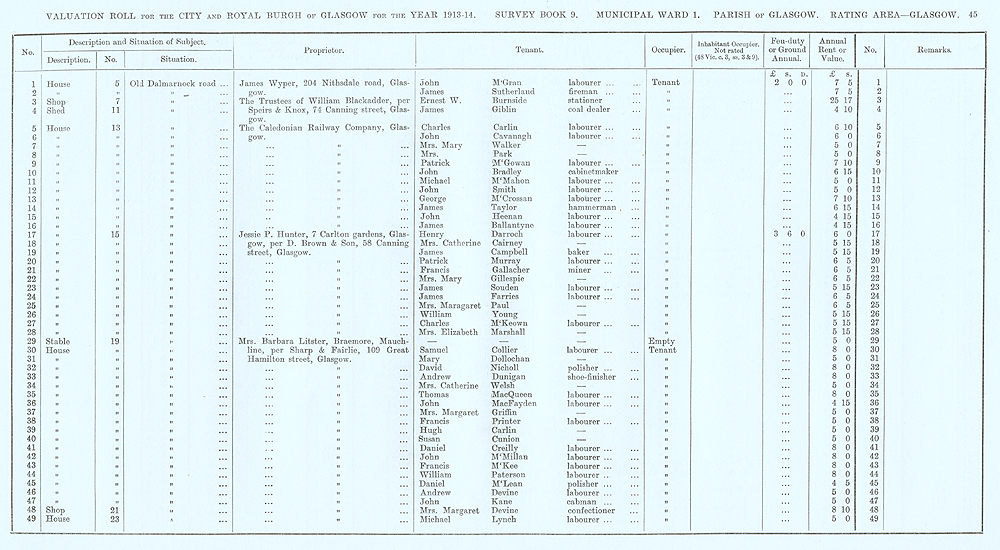 Glasgow Valuation Roll VR 1913-14, Ward 01, p045