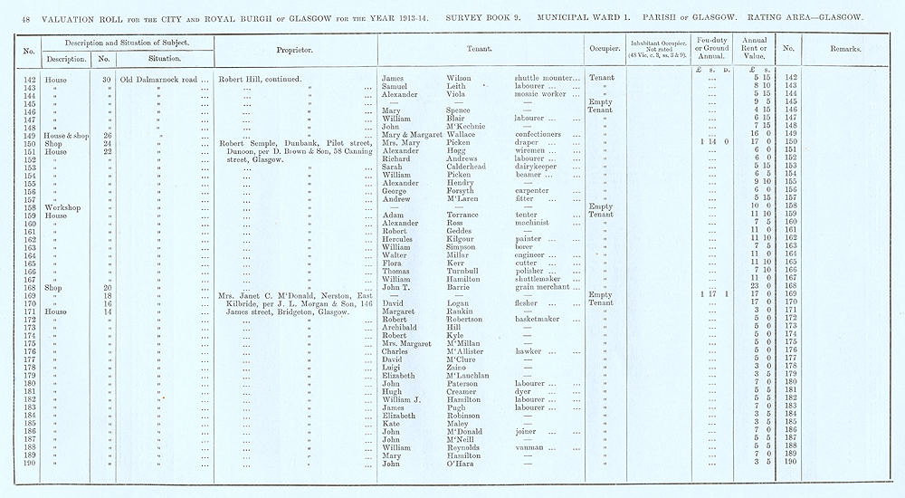 Glasgow Valuation Roll VR 1913-14, Ward 01, p048