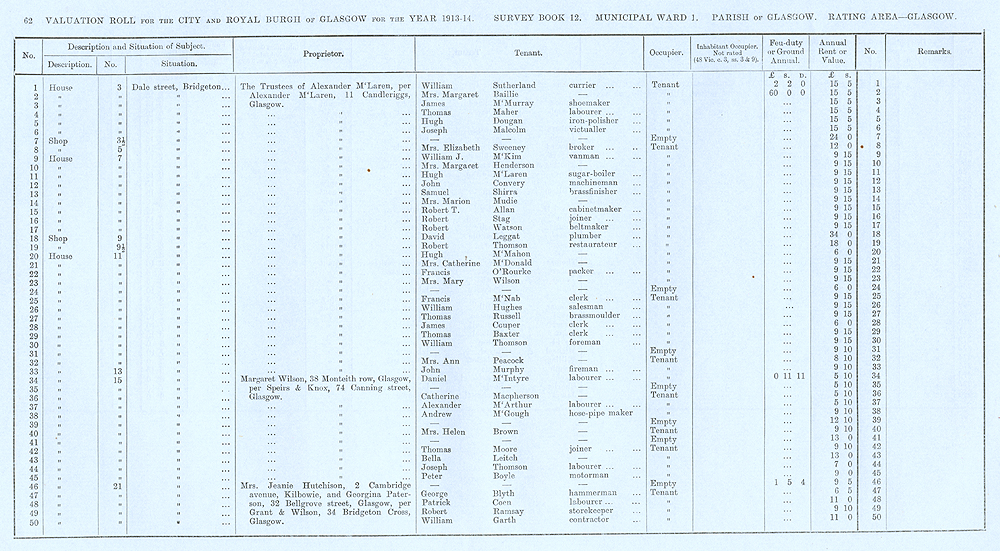 Glasgow Valuation Roll VR 1913-14, Ward 01, p062