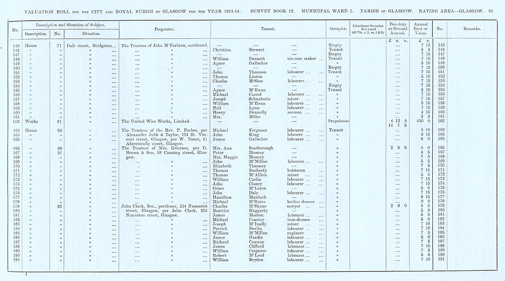Glasgow Valuation Roll VR 1913-14, Ward 01, p065