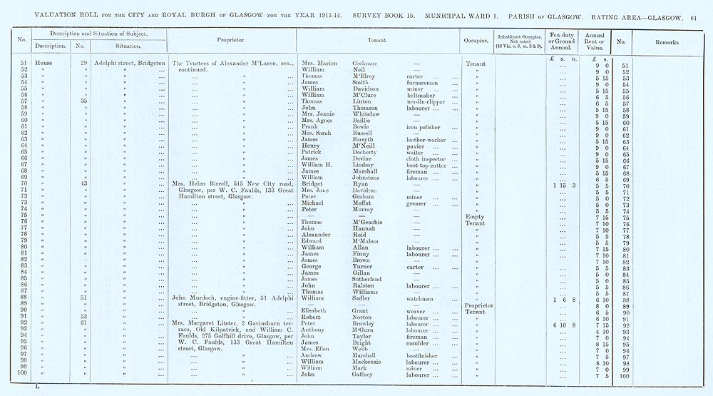 Glasgow Valuation Roll VR 1913-14, Ward 01, p081