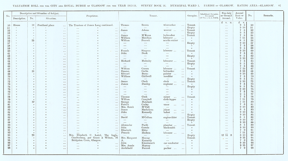 Glasgow Valuation Roll VR 1913-14, Ward 01, p087