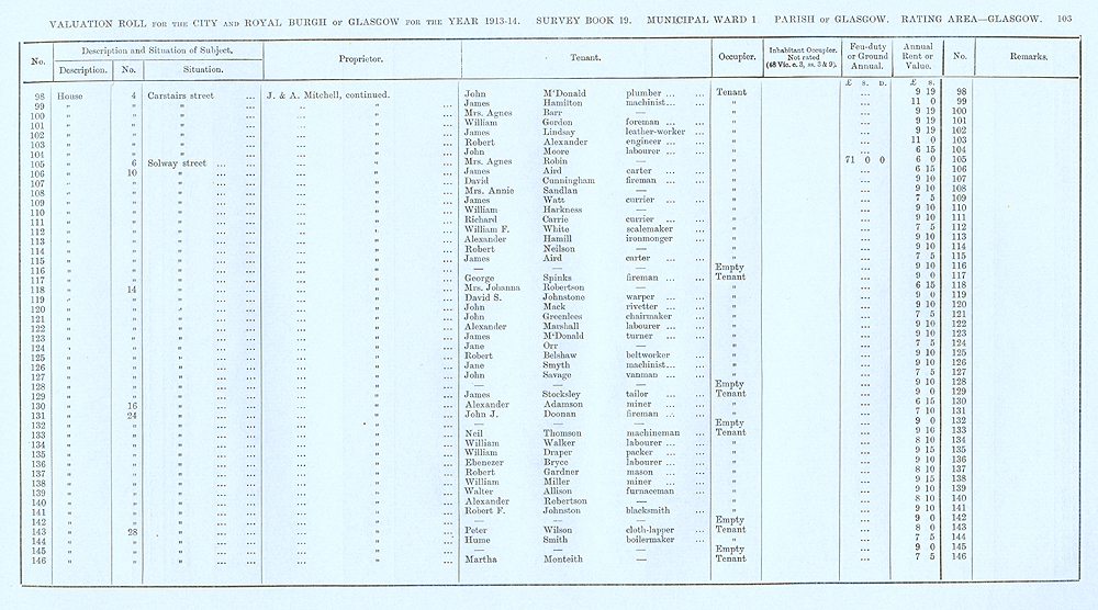 Glasgow Valuation Roll VR 1913-14, Ward 01, p103