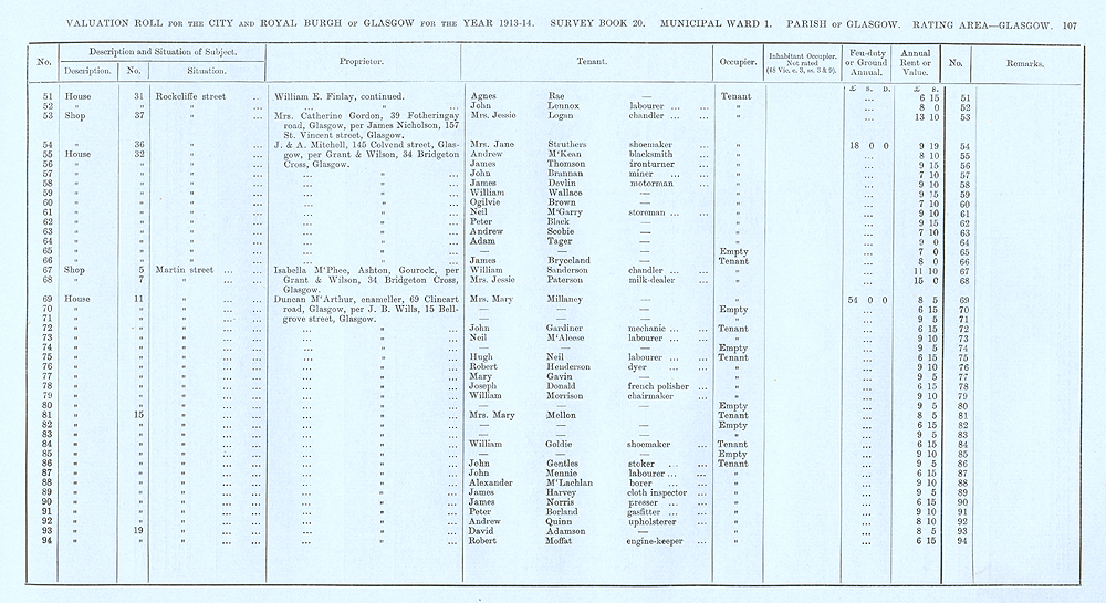 Glasgow Valuation Roll VR 1913-14, Ward 01, p107
