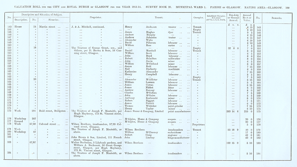 Glasgow Valuation Roll VR 1913-14, Ward 01, p109