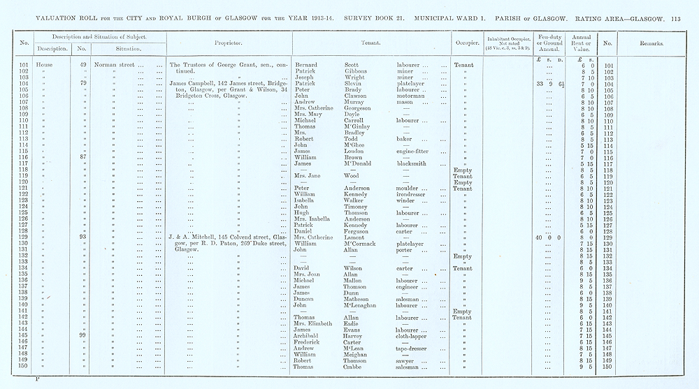 Glasgow Valuation Roll VR 1913-14, Ward 01, p113