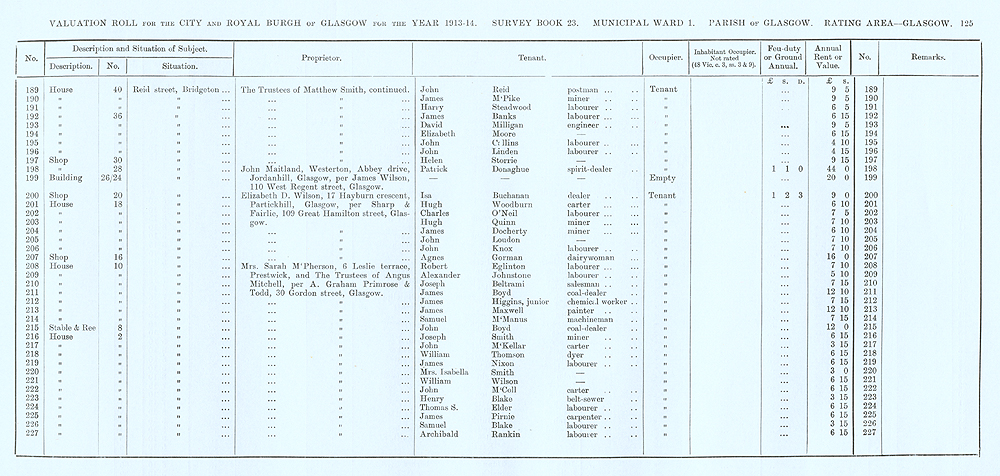 Glasgow Valuation Roll VR 1913-14, Ward 01, p125