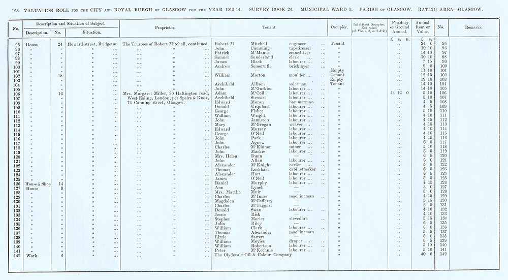 Glasgow Valuation Roll VR 1913-14, Ward 01, p128