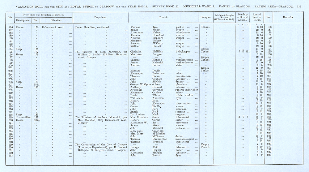 Glasgow Valuation Roll VR 1913-14, Ward 01, p133
