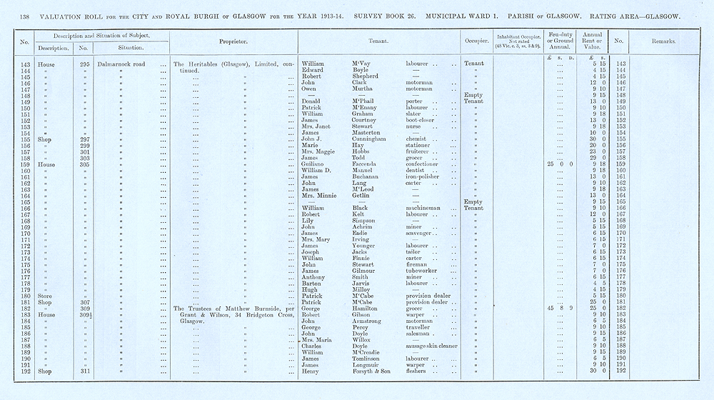 Glasgow Valuation Roll VR 1913-14, Ward 01, p138