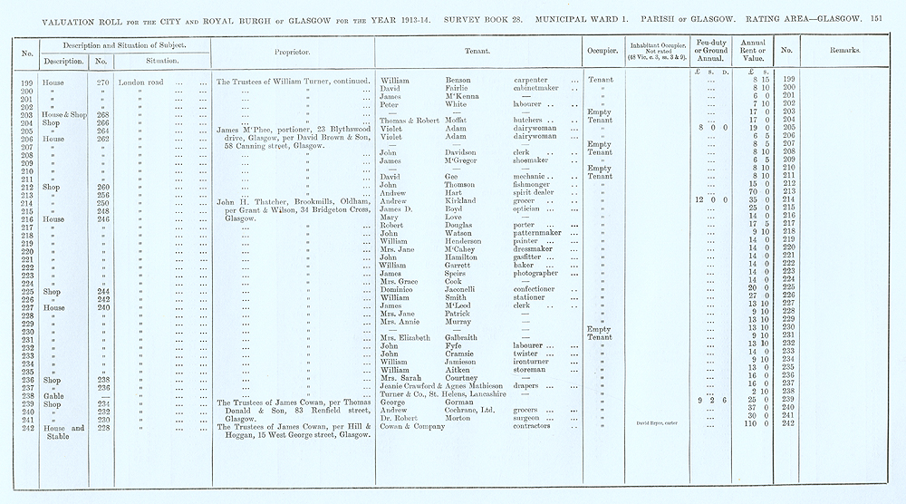 Glasgow Valuation Roll VR 1913-14, Ward 01, p151
