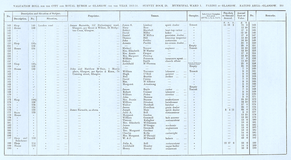 Glasgow Valuation Roll VR 1913-14, Ward 01, p155