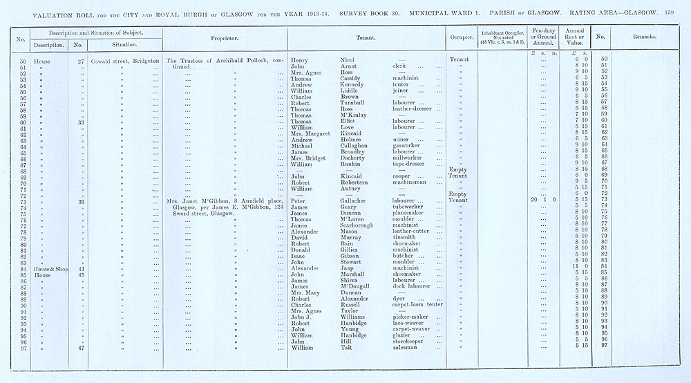 Glasgow Valuation Roll VR 1913-14, Ward 01, p159