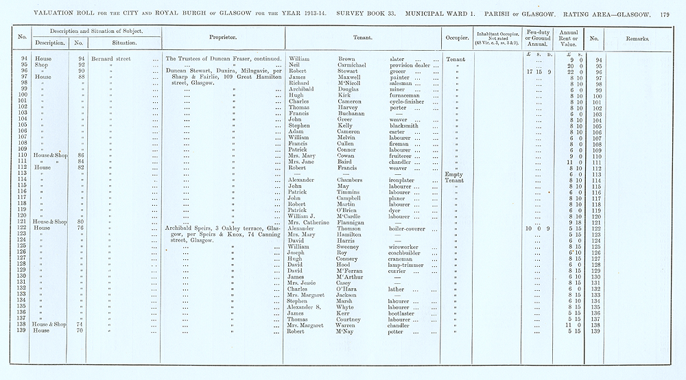 Glasgow Valuation Roll VR 1913-14, Ward 01, p179