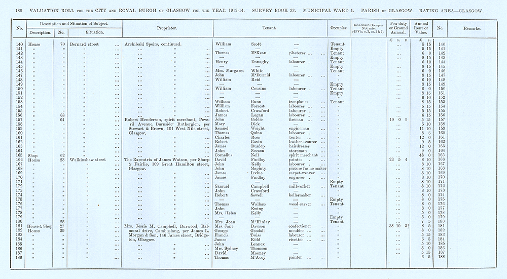 Glasgow Valuation Roll VR 1913-14, Ward 01, p180