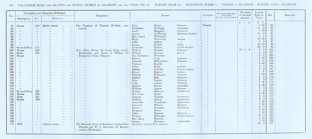 Glasgow Valuation Roll VR 1913-14, Ward 01, p186