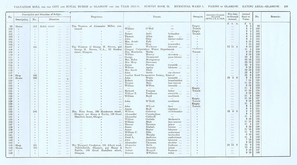 Glasgow Valuation Roll VR 1913-14, Ward 01, p189