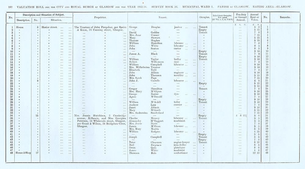 Glasgow Valuation Roll VR 1913-14, Ward 01, p192