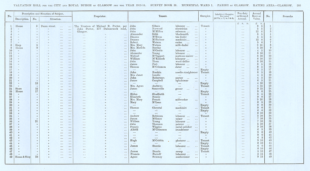 Glasgow Valuation Roll VR 1913-14, Ward 01, p203