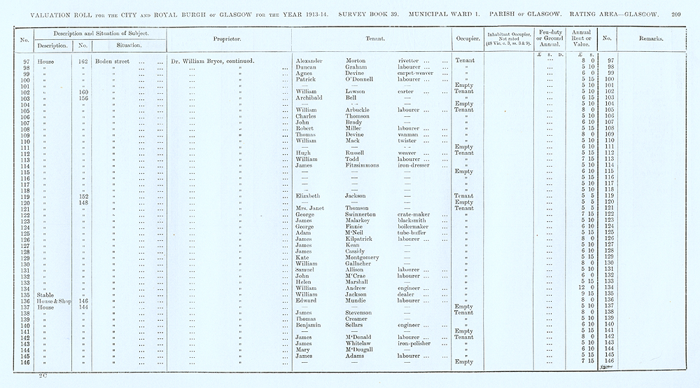 Glasgow Valuation Roll VR 1913-14, Ward 01, p209
