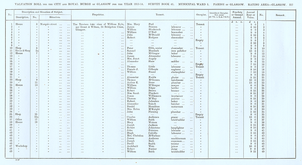 Glasgow Valuation Roll VR 1913-14, Ward 01, p217