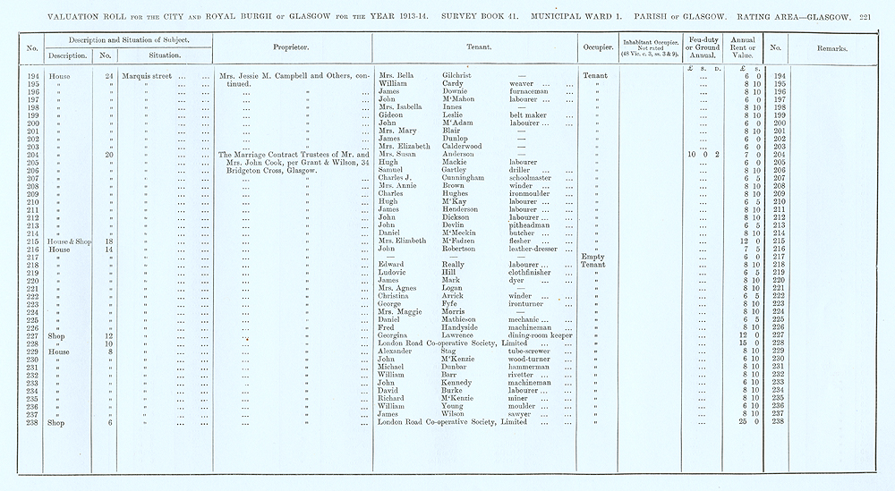 Glasgow Valuation Roll VR 1913-14, Ward 01, p221