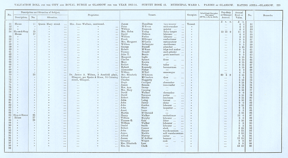 Glasgow Valuation Roll VR 1913-14, Ward 01, p223