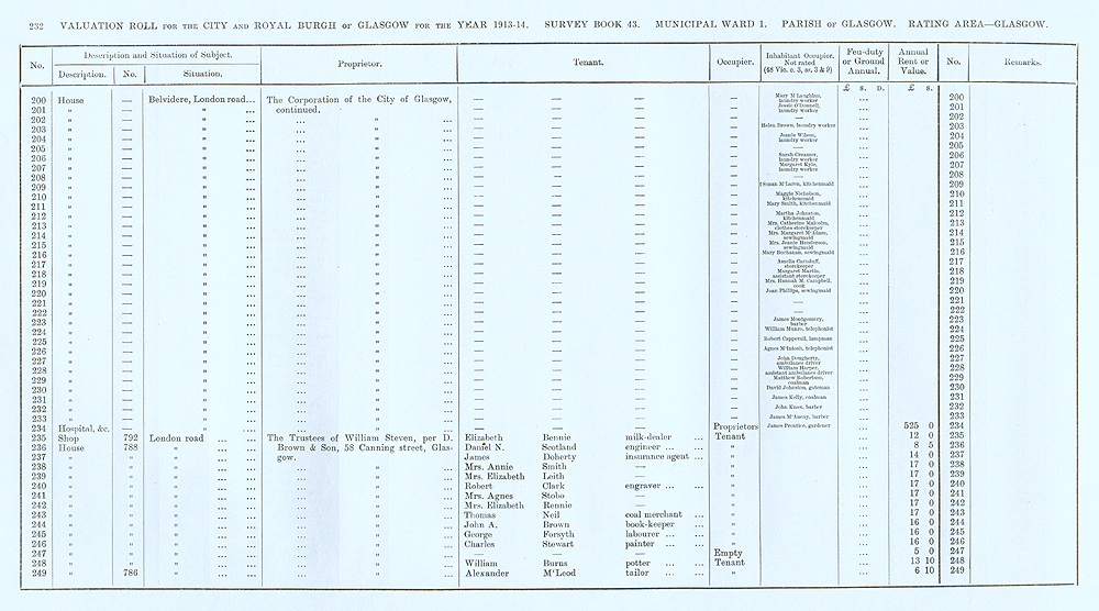 Glasgow Valuation Roll VR 1913-14, Ward 01, p232