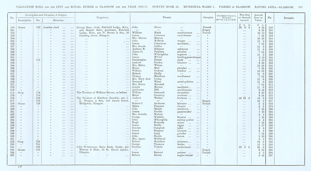 Glasgow Valuation Roll VR 1913-14, Ward 01, p233