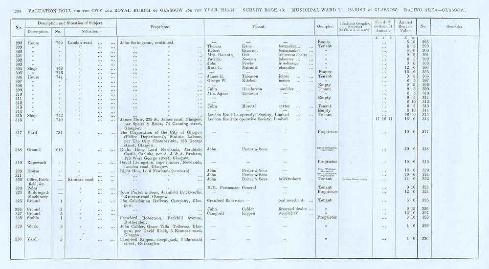 Glasgow Valuation Roll VR 1913-14, Ward 01, p234