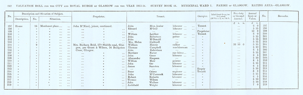 Glasgow Valuation Roll VR 1913-14, Ward 01, p242