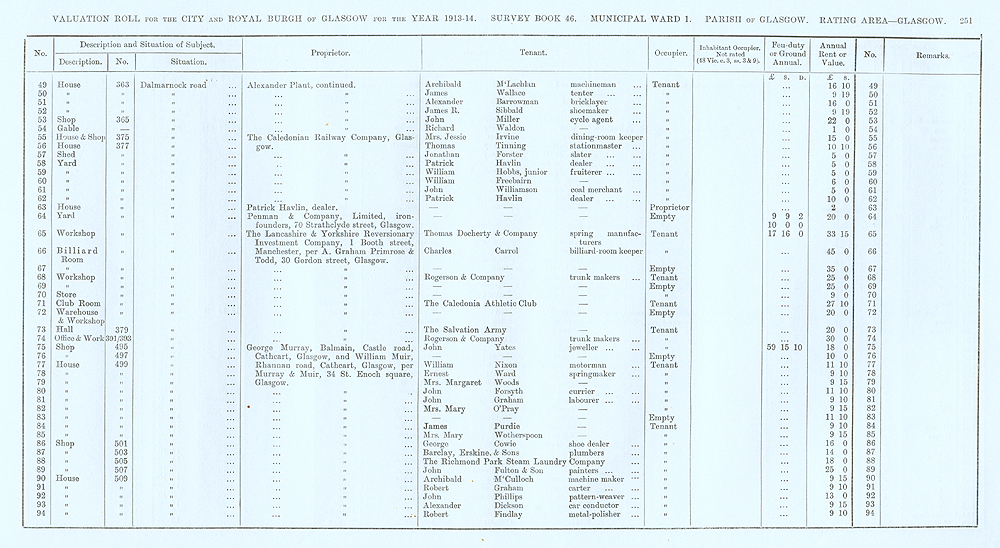 Glasgow Valuation Roll VR 1913-14, Ward 01, p251