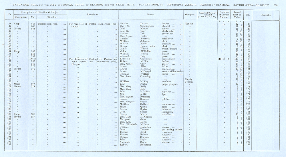 Glasgow Valuation Roll VR 1913-14, Ward 01, p253