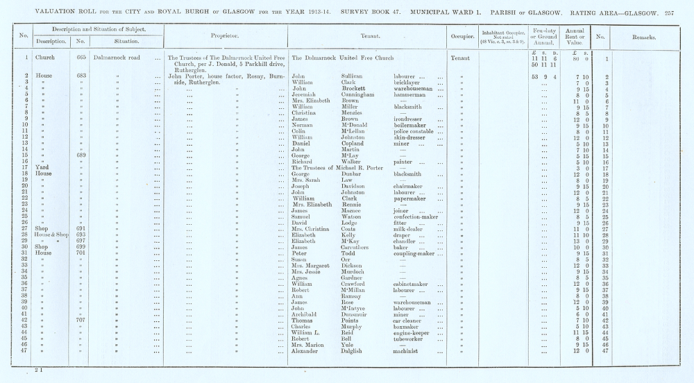 Glasgow Valuation Roll VR 1913-14, Ward 01, p257